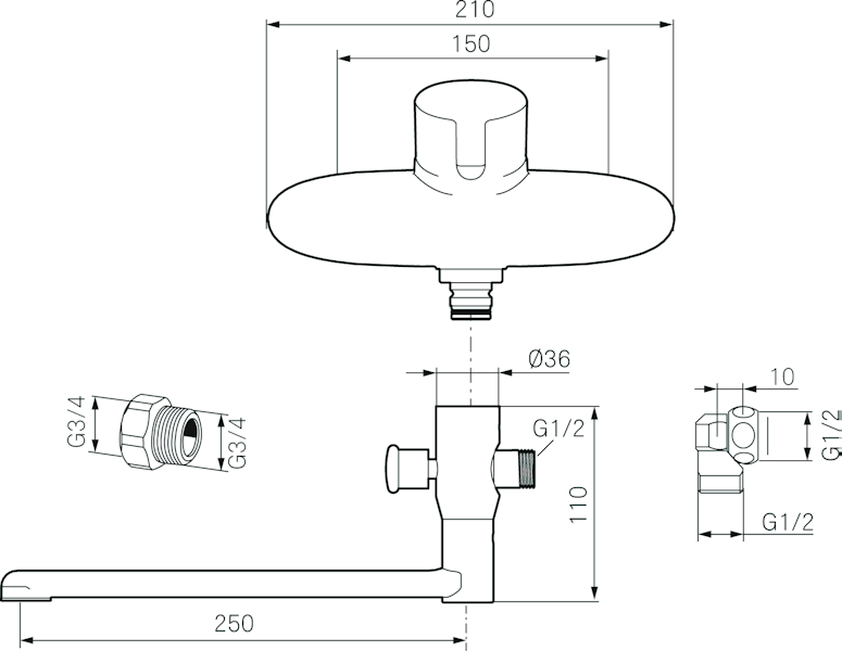 Kokoonpano: 750150 Mora MMIX 1-ote seinähana. 459625 vaihdin ja juoksuputki D-250 mm. 630470 kulmaliitin.