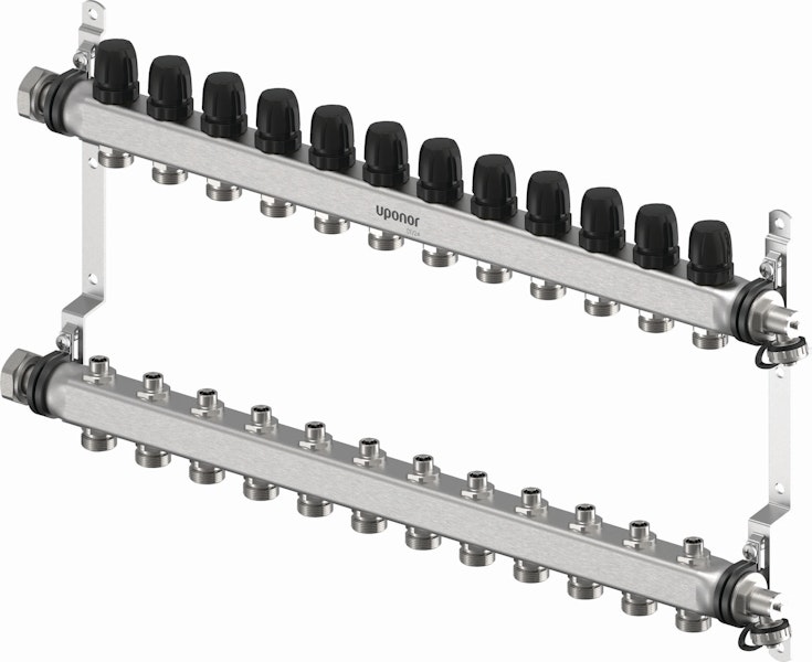 Ruostumattomasta teräksestä valmistettu esikasattu jakotukki, joka ei sisällä virtausmittaria. Jakotukkia on saatavana 2-12 lähtöisenä ja se voidaan halutessa asentaa Uponor Vario -jakotukkikaappiin. Putkipiirit kiinnitetään jakotukkiin Eurocone-puserrusliittimin, jotka valitaan putkikoon mukaan. Toimilaitteet valitaan säätölaitteen mukaan.