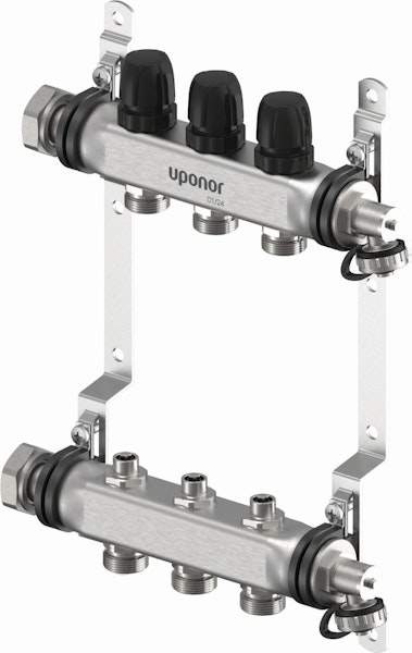 Ruostumattomasta teräksestä valmistettu esikasattu jakotukki, joka ei sisällä virtausmittaria. Jakotukkia on saatavana 2-12 lähtöisenä ja se voidaan halutessa asentaa Uponor Vario -jakotukkikaappiin. Putkipiirit kiinnitetään jakotukkiin Eurocone-puserrusliittimin, jotka valitaan putkikoon mukaan. Toimilaitteet valitaan säätölaitteen mukaan.