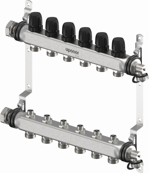 Ruostumattomasta teräksestä valmistettu esikasattu jakotukki, joka ei sisällä virtausmittaria. Jakotukkia on saatavana 2-12 lähtöisenä ja se voidaan halutessa asentaa Uponor Vario -jakotukkikaappiin. Putkipiirit kiinnitetään jakotukkiin Eurocone-puserrusliittimin, jotka valitaan putkikoon mukaan. Toimilaitteet valitaan säätölaitteen mukaan.