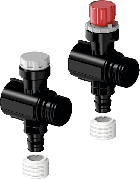 Modulaarinen lasikuituvahvisteisesta polyamidista valmistunut lattialämmityksen jakotukki. Paluujakotukin käsisäätöpyörä voidaan korvata toimilaitteella. Jakotukissa Q&E-liitos.