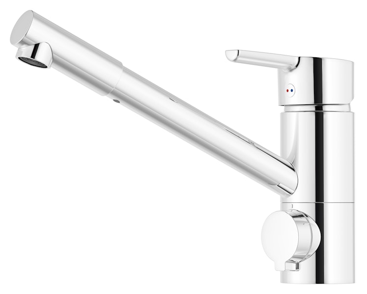 Matalaputkinen, ergonomisesti muotoiltu MORA MMIX II -keittiöhana on varustettu pk-venttiilein.