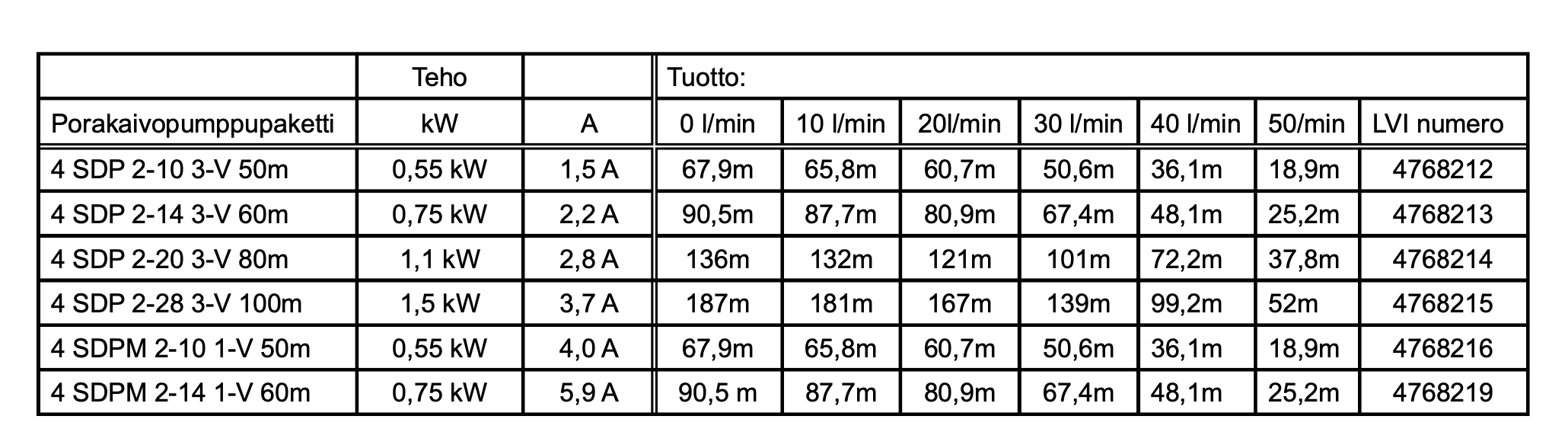 Porakaivopumppupaketti Calpeda SDP 2-10 on vahva ja kestävä upotettava porakaivopumppu. Ne soveltuvat mitä erilaisimpiin käyttötarkoituksiin. Calpeda-Subteck SDP 2-10 kestää enemmän hiekkaa pumpattavassa vedessä kuin kilpailijansa. Korkea hiekansietokyky takaa pitkän käyttöiän pumpulle. Tämä malli on tarkoitettu pääasiassa omakotitalojen, mökkien ja maatalouden käyttöön.