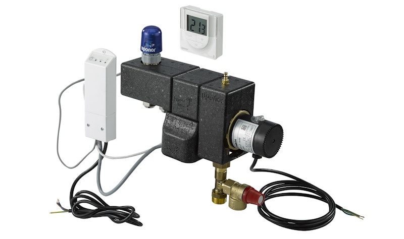 Yhden tai kahden lattialämmitysputkipiirin liittämiseen patteriverkostoon. Sisältää sähkövastuksen kesäaikaista mukavuuslattialämmitystä varten. Vastuksen teho 500 W. Pumppuryhmä riittää n. 30 m² pinta-alalle. Ensiöpuolen lämpötila max. 90 °C, toisiopuolen max. 50 °C. Lattialämmitysputkiston liitoksessa 3/4″ Eurocone-liitin.