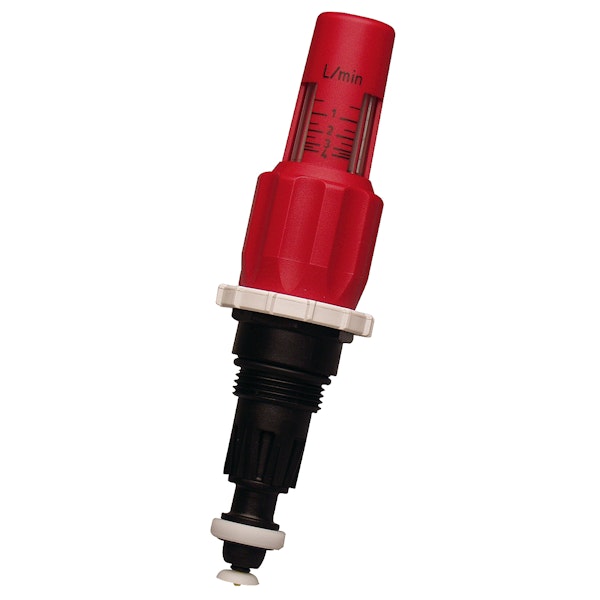 Menoventtiili virtausmittarilla. Asennetaan menojakotukin alkuperäisen venttiilin tilalle. Virtaaman säätöalue 0,5-4 litraa/min.